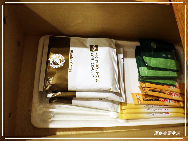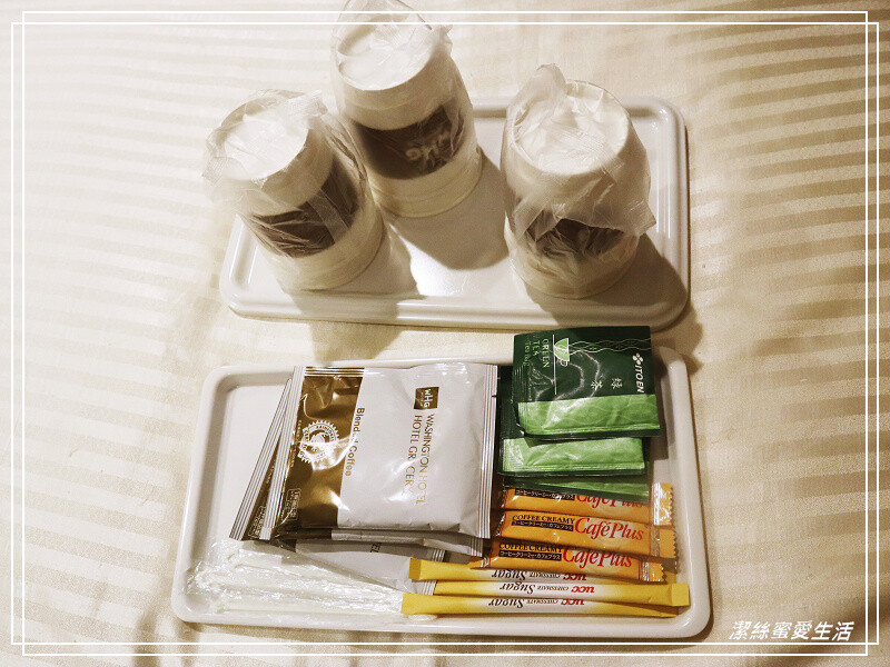 飲品提供濾掛咖啡加綠茶包——依人數提供,我們是三人入住,不多不少就是恰恰好三個杯子/三份咖啡包和三包綠茶XD。