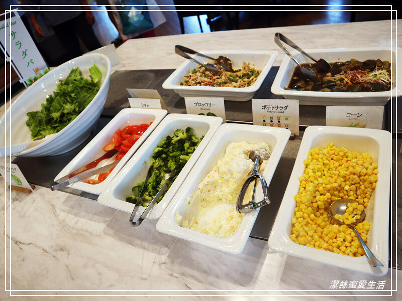 這邊則有各式沙拉可以選擇,然後發現靠近西式餐食區的座位,大多是外國臉孔,覺得服務人員在座位上應該有刻意安排過😆。
