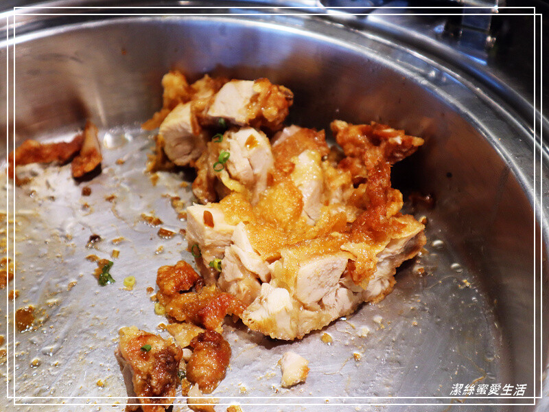 這個雞腿排頗受歡迎,已經快被夾光光XD,吃起來不乾硬,調味也不錯吃。