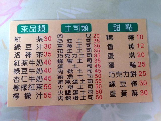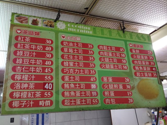 老江紅茶牛奶 這是一家高雄在地的老店,從1953年開店至今,而且當時的營業時間居然是24小時,可以算是當年24小時營業始祖之一,近年因為人手不足,才將營業時間改成7點半至凌晨兩點半。店裡除了紅茶牛奶還賣了烤土司、甜點、蛋餅等各式早餐,看似普通的小店,客人卻絡繹不絕,當天還排隊排了許久呢。而老闆的用料都比較堅持品質,準備點餐的時候,你會發現蠻多早餐都蠻貴的,所以就先抱著試吃看看的心態來吃早餐囉。