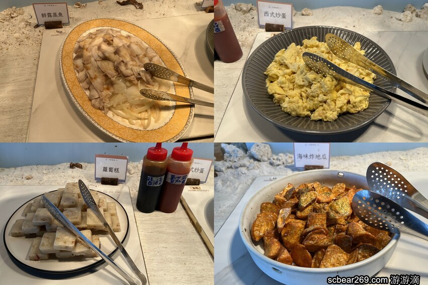 西式餐點則有沙拉、小香腸、培根、炒蛋和炸地瓜(這個好好吃)