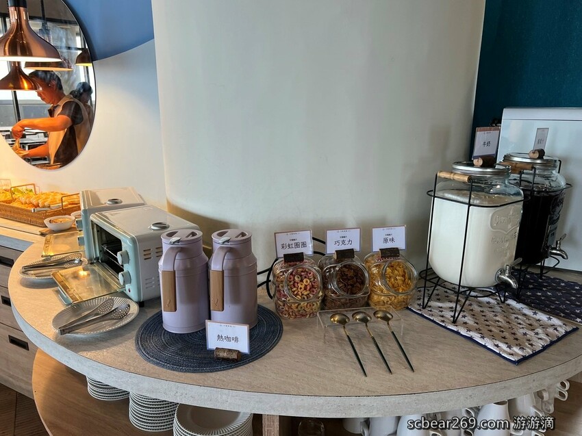 櫃檯側邊還有個自助區,上面放有茶水和餐具
