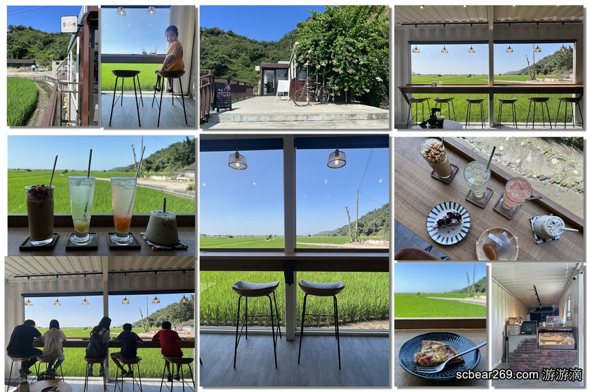 隔天退房後來到位於外埔的蜜境咖啡,坐在落地窗前欣賞一片綠油油的田野景致