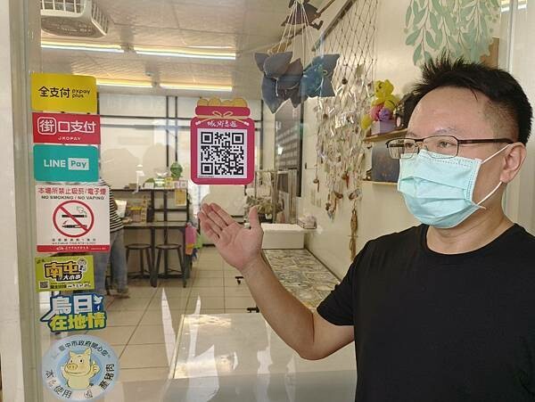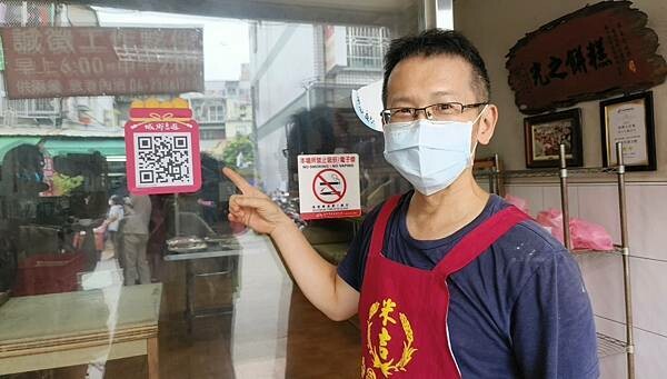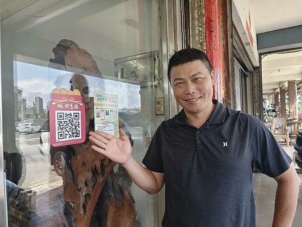帥氣的店老闆在店內引導大家掃描QR Code集點