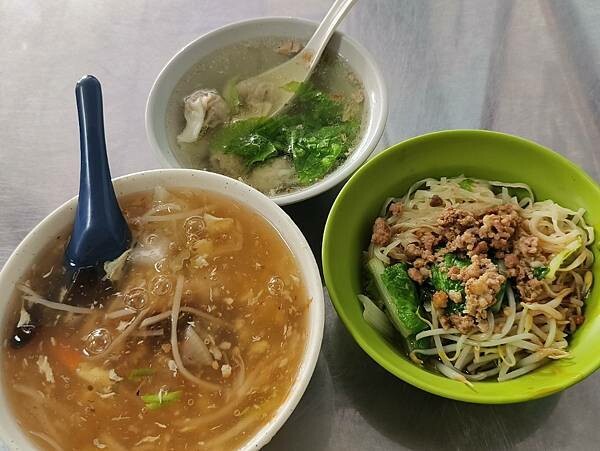 我跟阿白兩個人點了肉羹麵、餛飩湯及乾意麵