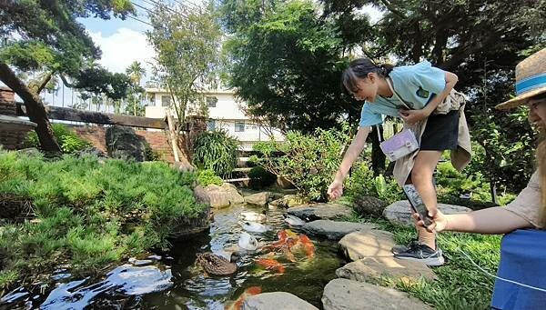 阿白也忍不住買了魚飼料到外頭餵魚