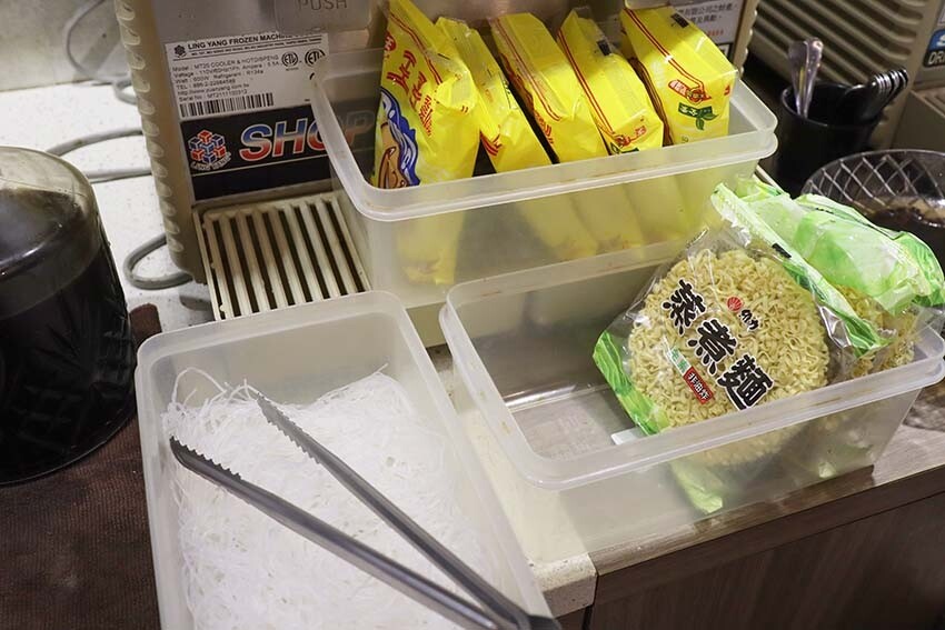 也提供各式麵類,王子麵、蒸煮麵、冬粉