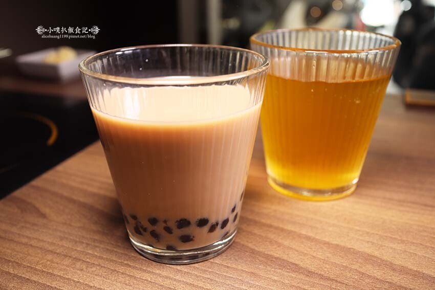飲料我選擇珍珠奶茶,奶香好喝,Q軟的珍珠也相當好嚼,老公則拿了無糖綠茶,也順口好飲