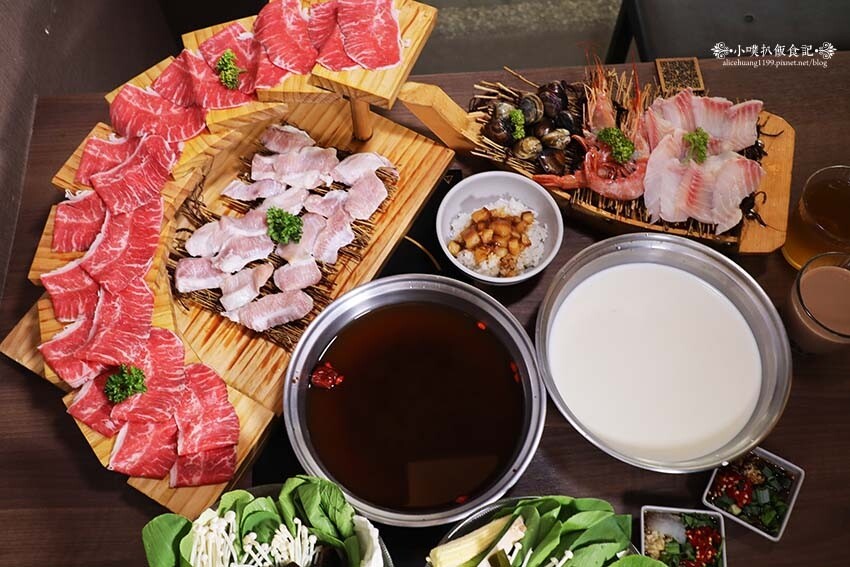 肉片則是兩種湯底,呈現不同風味,藥膳鍋會有中藥材的甘甜美味,牛奶鍋則是充滿濃郁奶香氣息,大家可以都嘗試看看