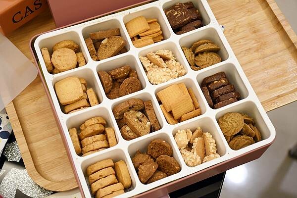八種口味的手工餅乾在16宮格內,每一種都可以吃到兩格,全家人都能分享著吃