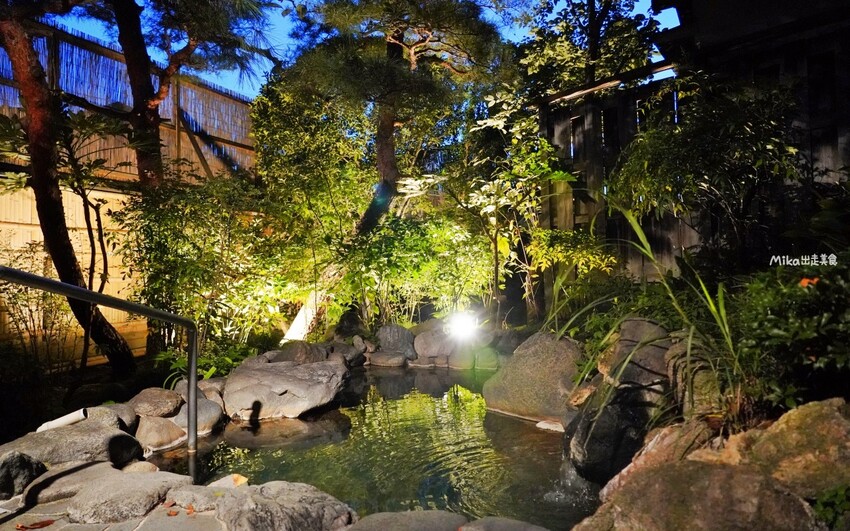 旅館外的日式庭園晚上拍起來也很好看