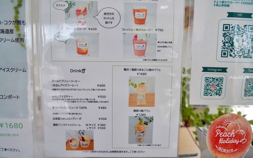 清晨採摘 限量的水蜜桃聖代真的必吃,我們很幸運的趕上最後一期產季,吃到最產季末端的水蜜桃。總共用三個不同品種水蜜桃做成的水果甜點聖代,可以吃到不同層次口感水蜜桃,內層還有搭配冰淇淋、奶油等..堆疊出不同層次風味,真的很值得一吃。