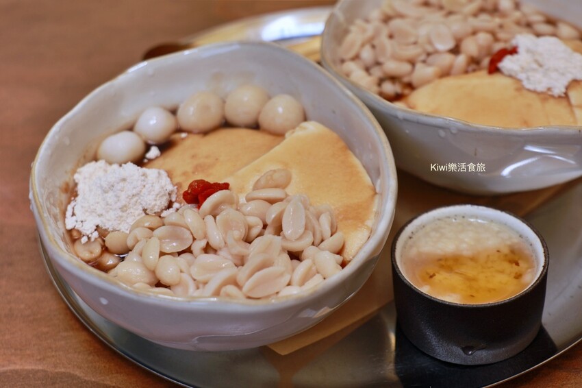 桂花酒釀花生豆花很香,豆花旁邊還有麵茶這混搭的有點特別。