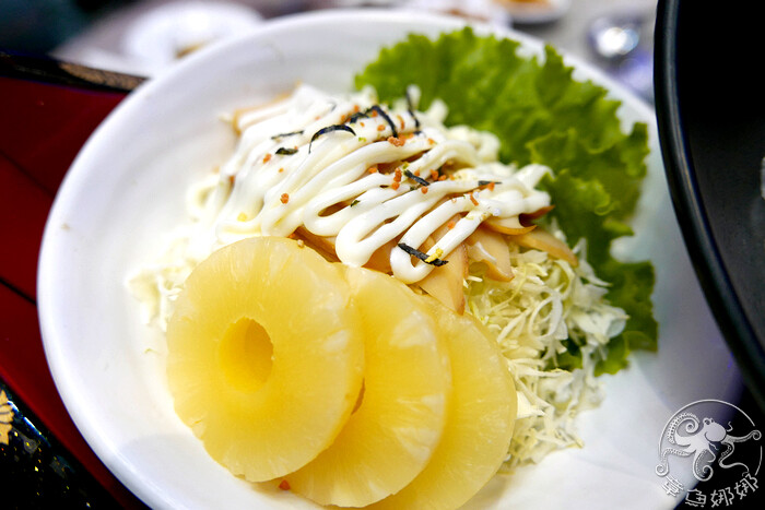 冷盤鮑魚搭上鳳梨,酸酸甜甜的鳳梨片也很搶手!