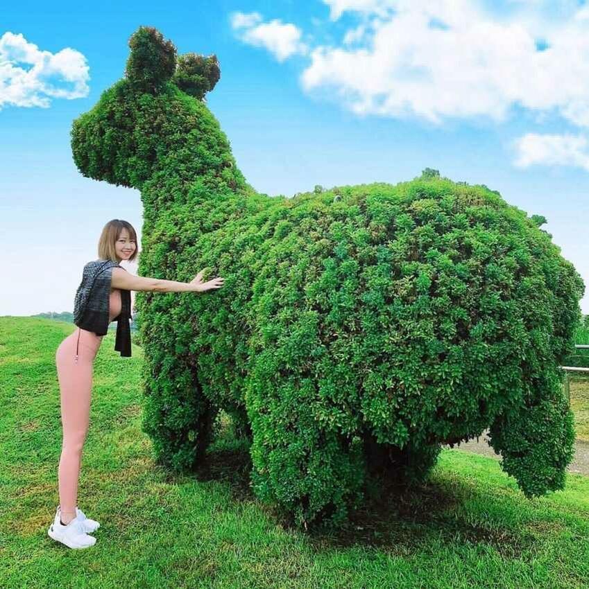 在戶外大型溜滑梯旁修剪了二隻看起來像跳跳馬的造型樹,但它不是跳跳馬,它可是人氣國寶展品中最受歡迎的戰國青銅器「犠尊」,也是古代專門用來盛酒的禮器。不過因為它可愛的外型吸引了不少人停下合照,還好園區在旁邊有立牌寫著它的介紹,不然真的很容易誤會它是跳跳馬或是草泥馬。