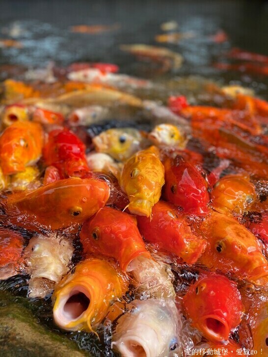 只能尖叫,突然想餵魚,民宿竟然也能提供免費的魚飼料