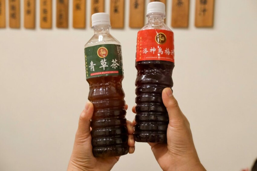 ▼茶飲都是店家以中藥材熬煮而成,青草茶入口甘甜不苦澀,洛神烏梅汁酸酸甜甜十分順口,兩款喝起來都很清涼解油膩。