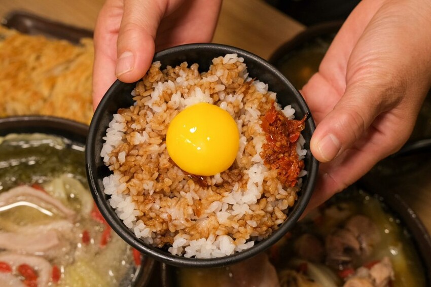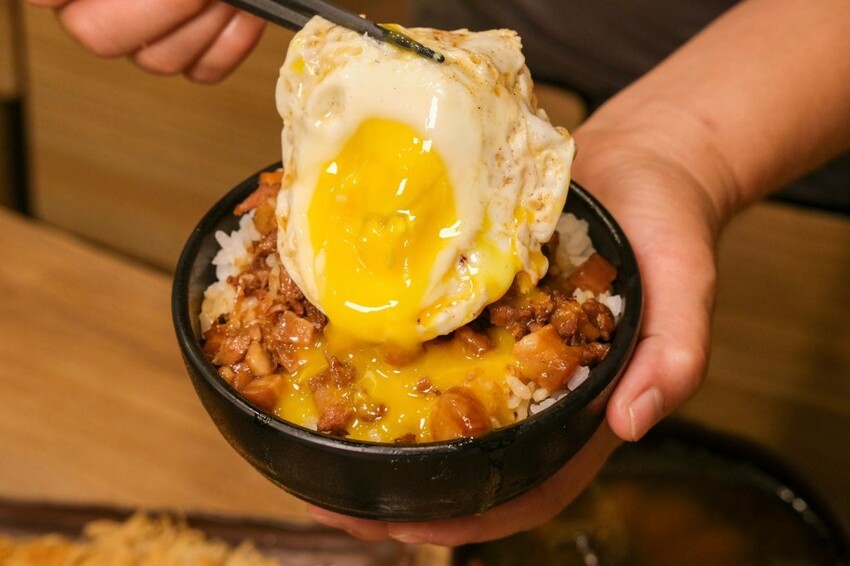 滷肉飯+麻油香煎蛋💰60元 古早味豬油拌飯+生蛋黃💰50元