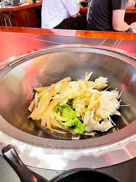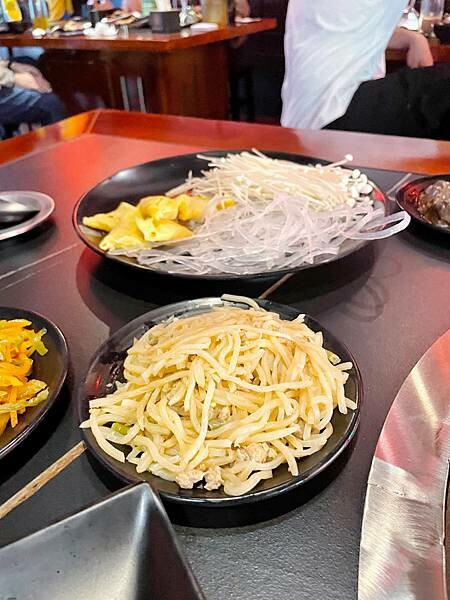 鍋內基本的鍋底裡面會有高麗菜、白蘿蔔、寬粉、紅薯粉、牛小排、豆芽菜等等!牛小排份量不少耶,有7.8塊!