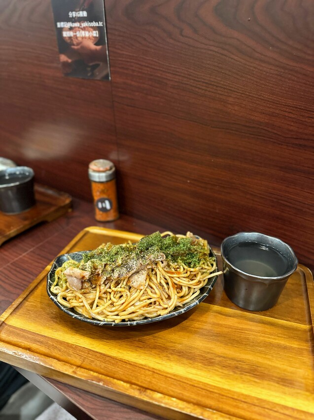 只要是單點炒麵,都會有附一杯海帶芽湯,我大約回訪兩次,對於我的食量而言,飽足感很棒,也很好吃!
