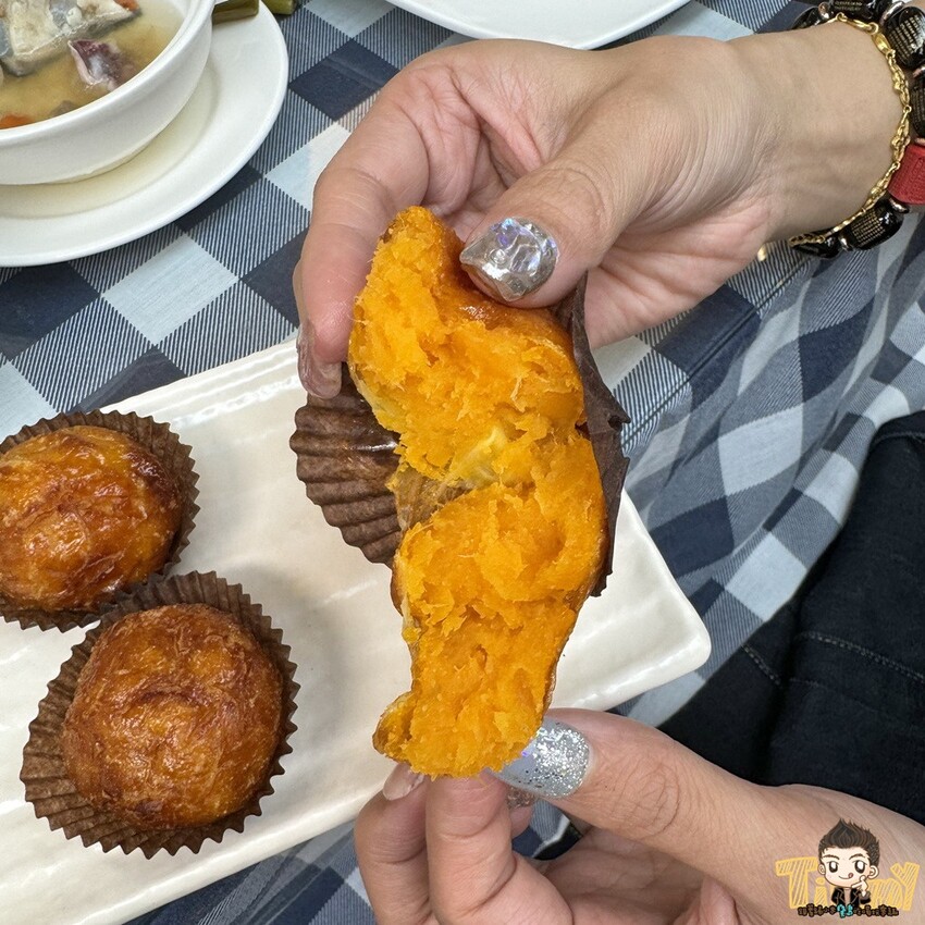 飯後甜點是酥皮地瓜球(98元),內餡有飽滿綿密的地瓜泥,濃郁的地瓜甜香,讓小彤很喜歡