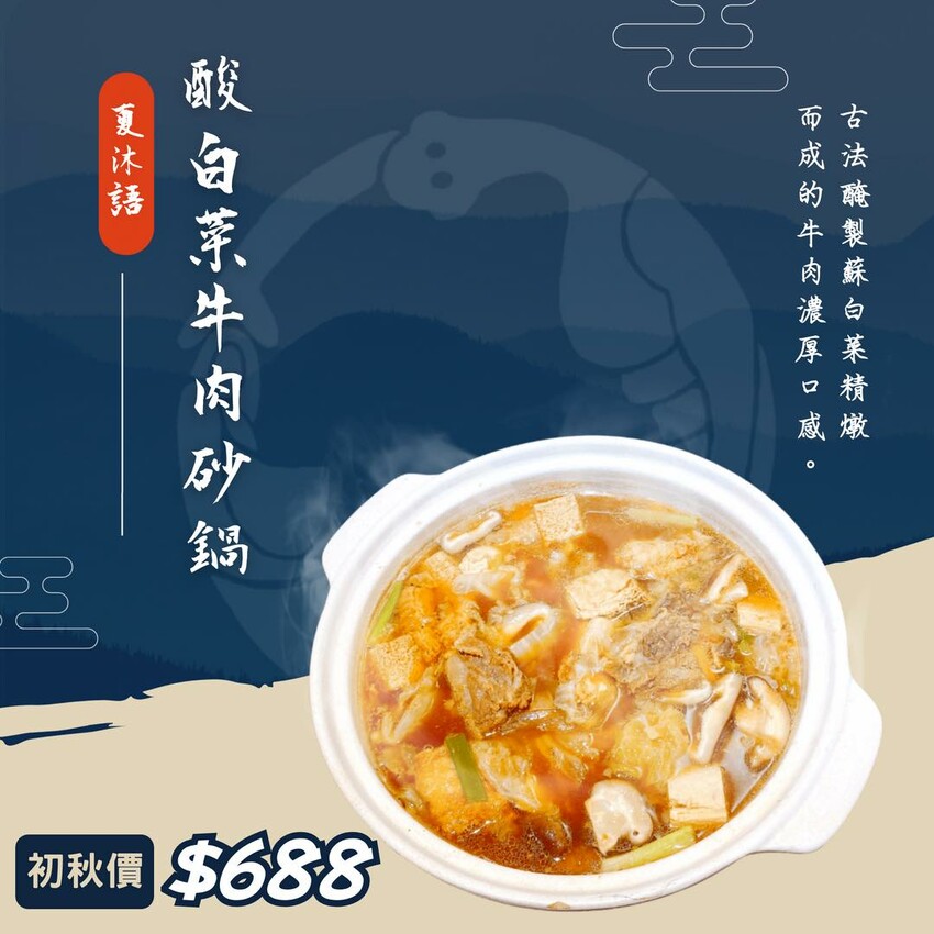 接下來這可厲害了,酸白菜牛肉砂鍋(688元)使用自然發酵的酸白菜,搭配牛肉、香菇、凍豆腐、豆皮等滿滿配料熬煮而成