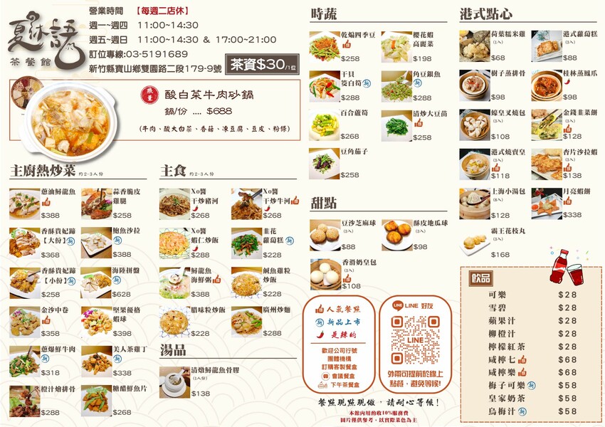 以上是我們的心得分享,夏沐語轉型為茶餐館後,不僅保留經典港式點心,還新增了中式熱炒料理,是喜愛港式料理的老饕及園區下班的朋友們的好去處,適合好友或公司團體聚餐