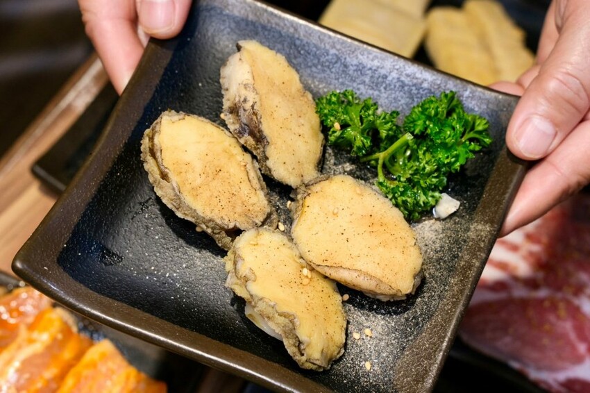 ▼其他海鮮的品項也很多選擇,超大顆的生食級北海道大干貝,Q彈多汁充滿甘甜香氣,還有彈牙嚼勁的鮮美鮑魚,以及頭好壯壯的嚴選虎蝦,吃起來新鮮度都很足夠。