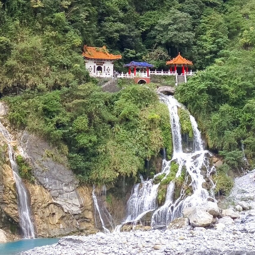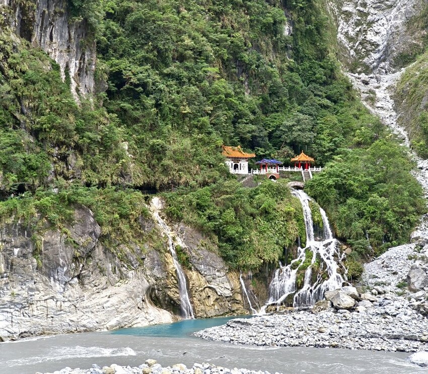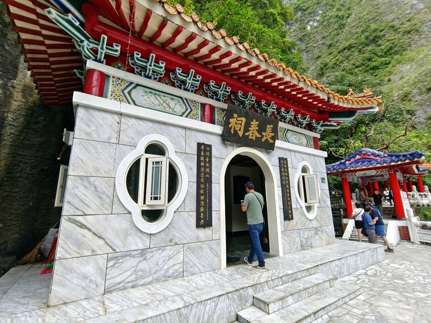 ▼「長春祠」就矗立在立霧溪谷的崖邊,這是為了紀念闢建中橫公路殉職人員所建立,祠邊湧泉長年飛瀑而下,公路局命名為「長春飛瀑」,也是非常有意義的地標。