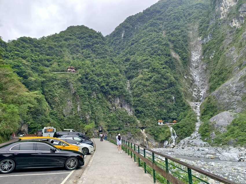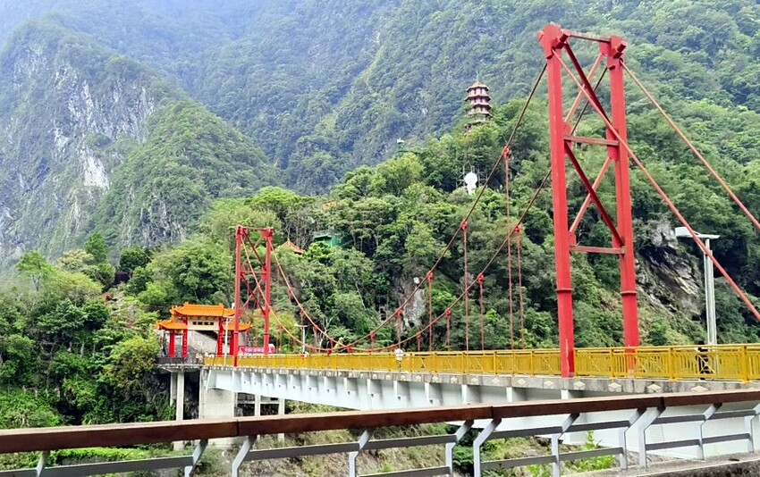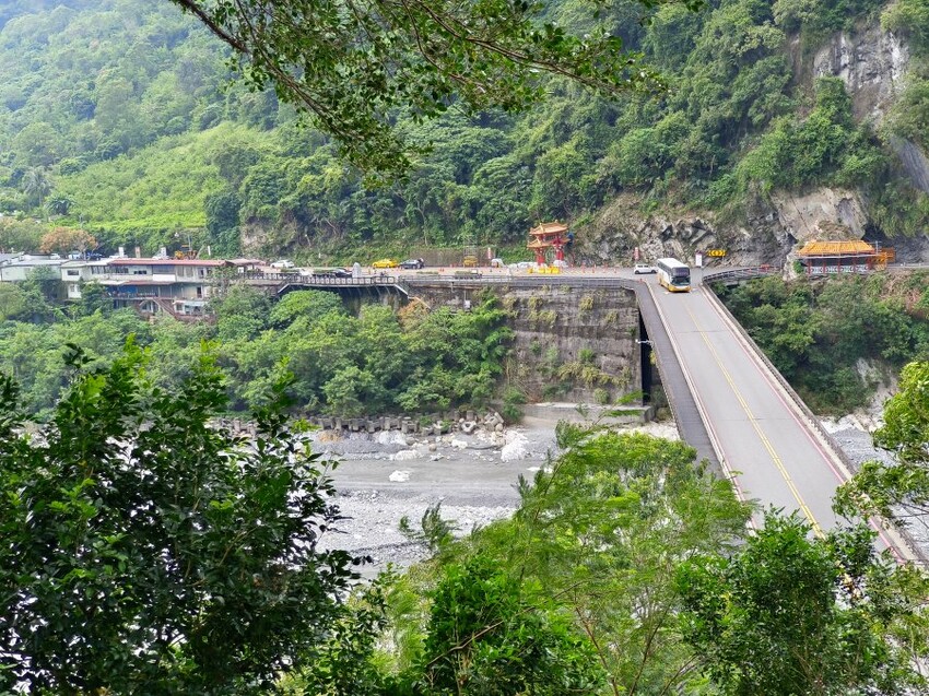 ▼從這裡還可以欣賞到太魯閣菩渡橋的美景,搭配牌樓也很漂亮啊~~接著我們就搭「台灣好行310太魯閣線」準備回程囉!