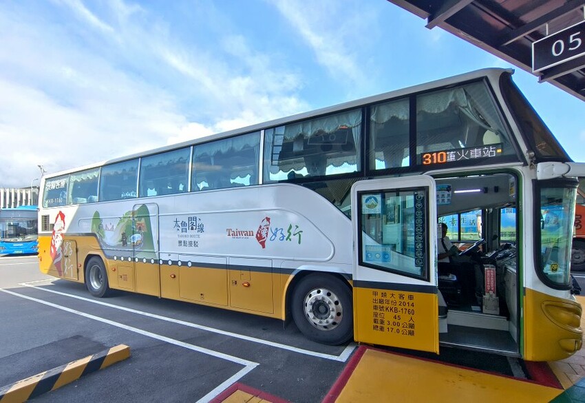 ▼我們這次是搭乘9:50的「台灣好行310太魯閣線」(太魯閣線路線最新時刻表),沒多久車子就來囉!外觀有明顯的台灣好行LOGO,旁邊也有太魯閣線的圖示,算是非常容易辨識。