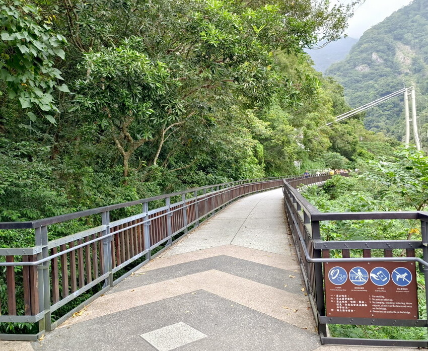 ▼兩邊的山勢陡峭,群山巒疊,加上兩側溪谷的風光,俯瞰也相當壯闊;且走在橋上也不會覺得晃,算是很平穩好走!