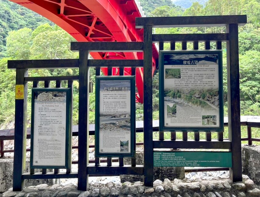 ▼這裡還有詳細的介紹,讓遊人更能一目了然!砂卡礑步道原稱為「神秘谷步道」,為泰雅族語「臼齒」之意,相傳泰雅族祖先在開墾時挖到臼齒而得名,當地原住民認為是祖宗留下的歷史痕跡,故將此地稱作砂卡礑,原為太魯閣族人的生活空間,日據時代為了闢建立霧電廠而鑿建這條步道。