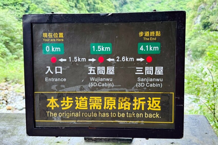 ▼距離入口1.5公里的五間屋是初階班,也是適合帶小朋友來訪的距離,因當時檢查哨舊址有5間原住民住家,於是又稱「五間屋」,在地人也有販售一些小吃或是農特產品;三間屋原是太魯閣族的聚落,過去有三間屋舍而得名,腳力好或是有時間的朋友不妨可以走到終點再折返!