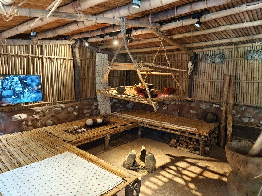 ▼花蓮太魯閣族的建築風格以竹屋為主,以竹材從地面往上構建,再以茅草覆蓋於屋頂上。
