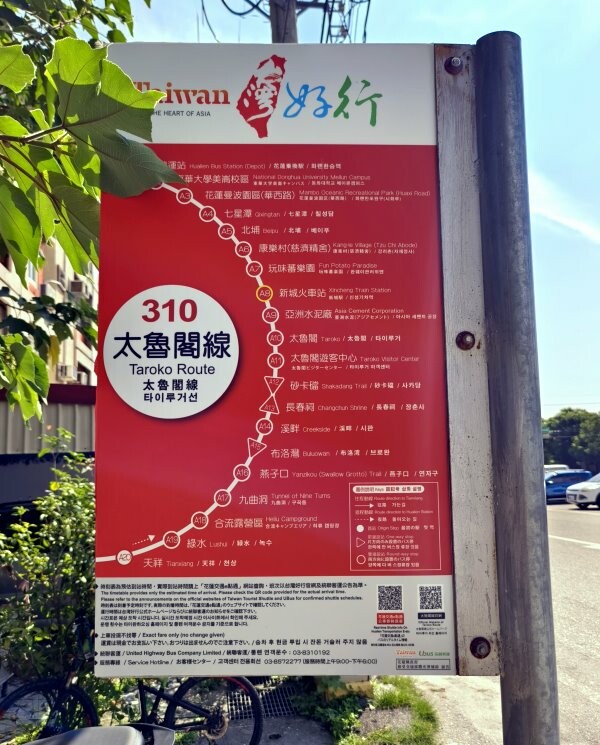 ▼台灣好行站牌的顏色非常鮮明,以大紅色系搭配310太魯閣線字樣,在遠處就能清楚看見站牌的位置!