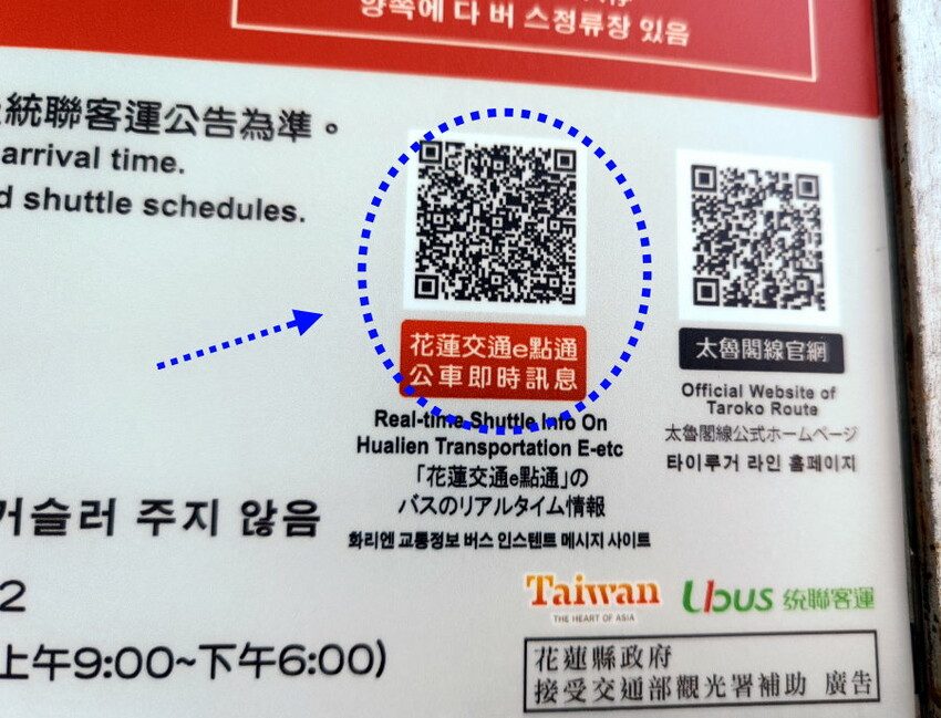 ▼雖然太魯閣線有提供到站時間,不過因為路況或是交通影響,實際到站時間可以掃描QR Code進到「花蓮交通e點通」查詢公車即時訊息。