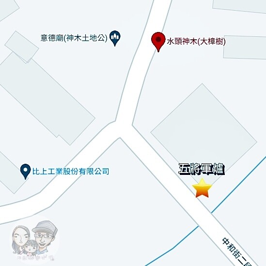 google maps定位「意德廟(神木土地公)」、「水頭神木(大樟樹)」,