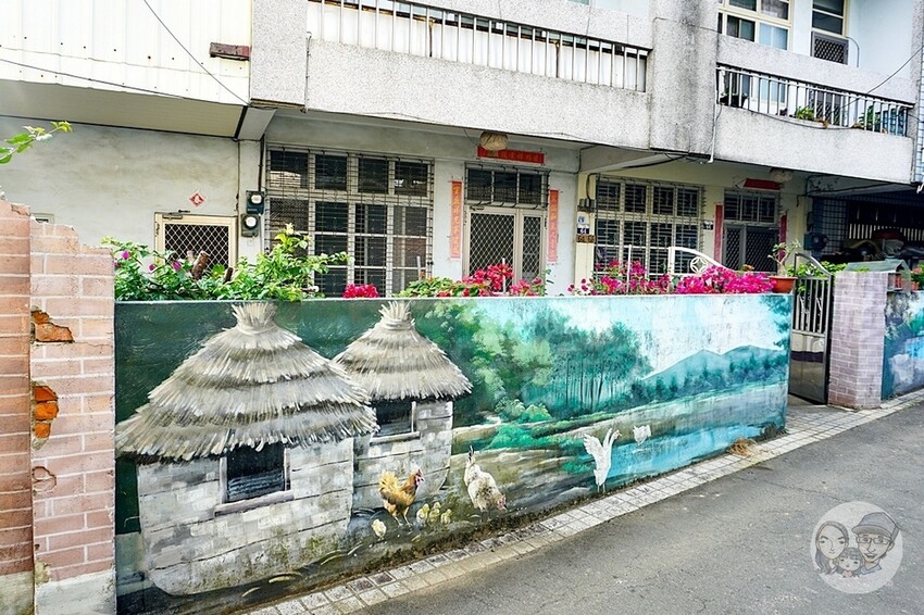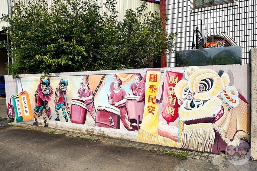 台中新社景點推薦-馬力埔彩繪小徑,位於新社長達2公里的鄉村風格彩繪牆,繽紛地方故事活躍於牆面上,還有隱身古厝中的300年歷史的媽祖神像喔!!