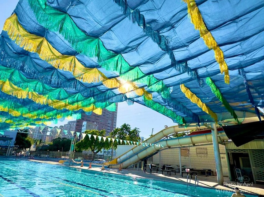 戶外的場地還有溜滑梯,但這天戶外游泳的人不多。