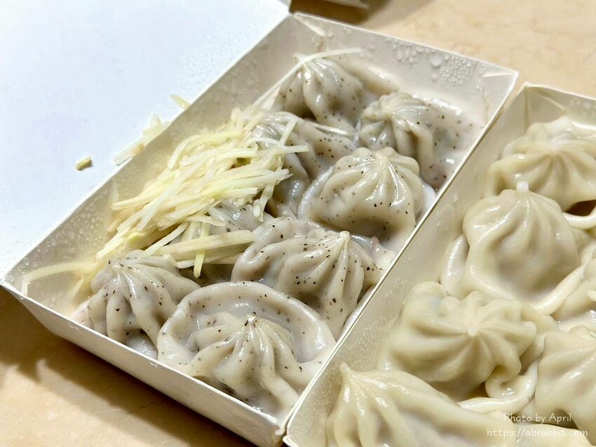 牛肉湯包的外皮有帶著像芝麻大小的黑點,蠻好認的。機器包的小籠湯包外皮跟手工的吃起來稍微厚一點點,小籠湯包上方像戴帽子一樣尖尖的超可愛。