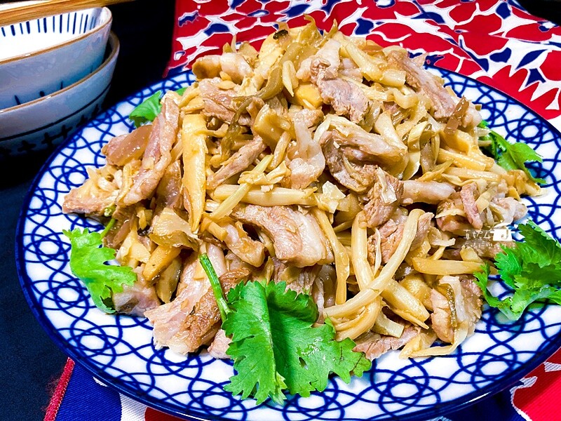 鹹菜筍炒肉片是我上個月和家人去清境農場時在商店街看到很多阿里山麻竹筍、筍乾、筍片,現場還有現煮試吃的香脆筍湯,我也跟著買了幾包脆筍尖和鹹菜筍,偶爾冰箱沒材料時我就用這個快速又方便的幫手來備菜,開胃好吃喔~