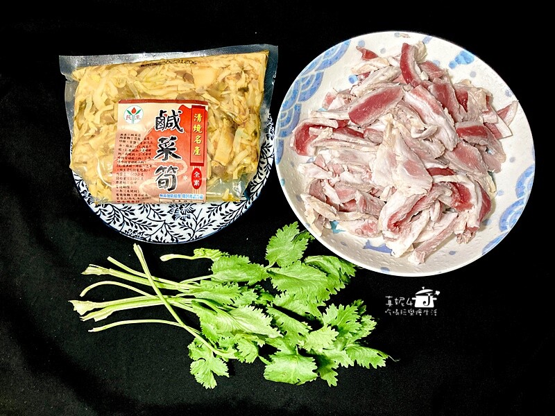 朋友教我鴨肉先跟薑片一起煮到乳白,另一邊把鹹菜筍炒出香氣後加到鴨肉湯裡用小火悶煮20~30分鐘再鹹淡就能上桌