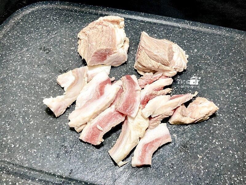 豬肋條切0.3公分厚的薄片,下鍋快熟不會老柴