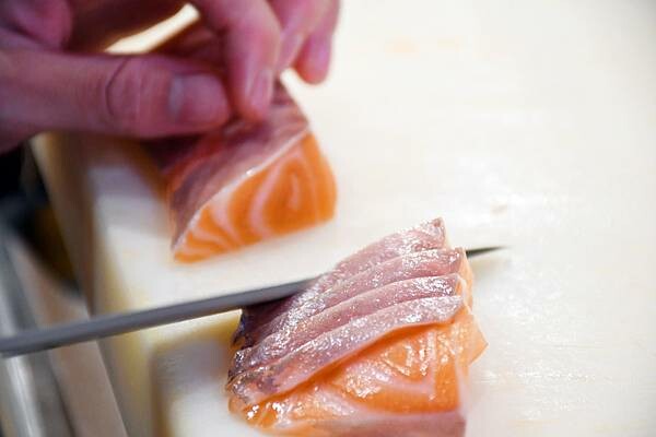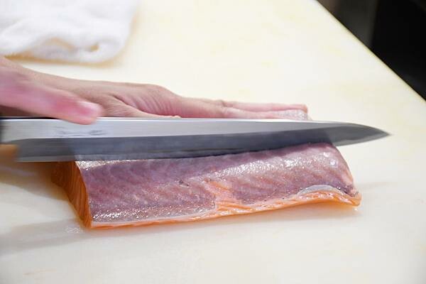 在以前不吃生魚片的時候,我總是覺得看著輕巧的手、宛如手刀為一體的輕切鮮魚,非常療癒