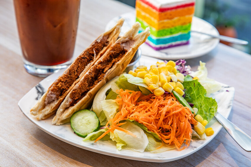 ML coffee 慕光咖啡工作室有推出超值方案,點熱壓吐司可以加價升級套餐,內含咖啡、熱壓吐司、生菜沙拉呢,搭配甜點,吃飽又吃巧唷