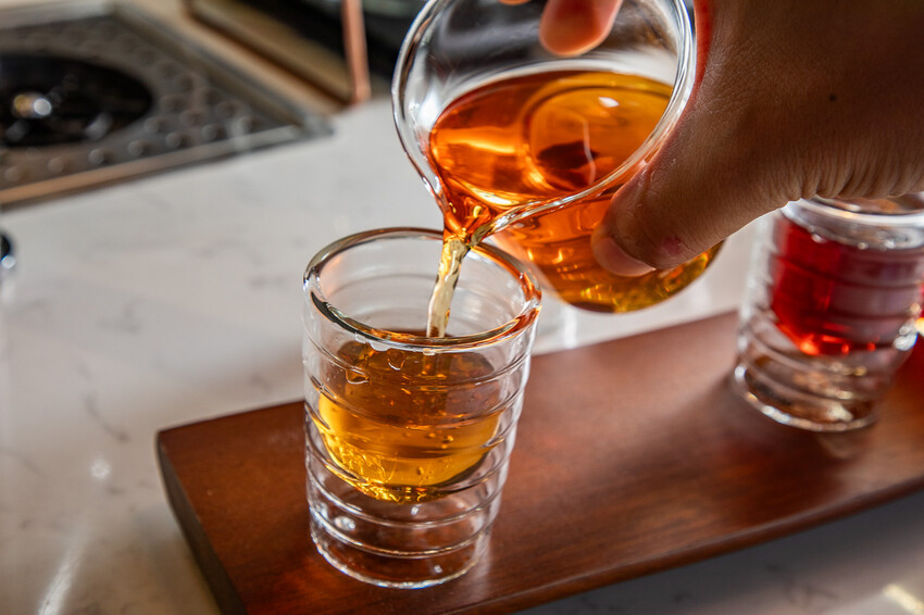 阿里山最佳後製競標冠軍咖啡(蜜處理、中烘焙),ML coffee 慕光咖啡工作室必喝阿里山冠軍咖啡,咖啡色澤呈現類似白蘭地的深琥珀色,咖啡香氣清雅芬芳,旁邊還有附上用阿里山咖啡樹葉泡的茶