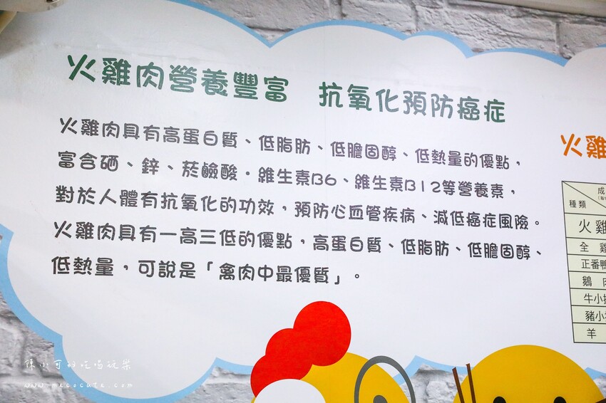 店內牆上貼著火雞肉營養價值,吃飯也能順便了解。