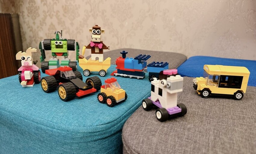看著屎蛋用樂高積木,創造出一個又一個的超能道具!