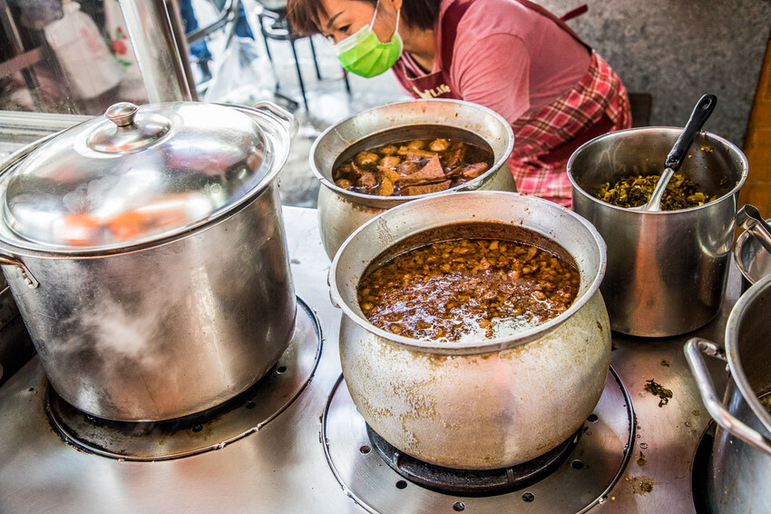 雖然已經過了中午用餐時間,但外帶便當的彰化在地人還真不少,而且阿姨超親切的,原本已經準備休息備料,還為了我們要買一碗十元的湯,還開火幫我們熱,一整個人情味超濃厚的,攤位前有很多小菜可以選,而且都不貴,一鍋鍋香噴噴滷肉就擺在攤前